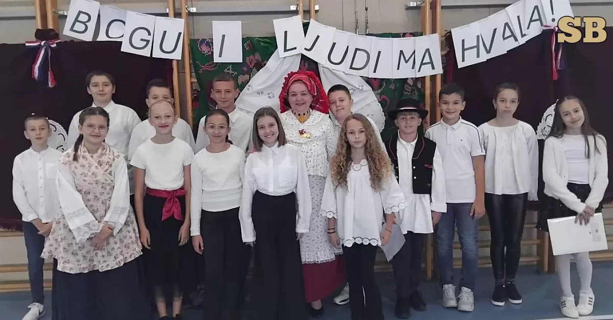 Učenici četvrtog i petog razreda interpretirali su i dvije pjesme pjesnikinje Jasne Raspasović iz Rastušja 'Miris kruha' i 'Prva lutka'. Nekoliko točaka posvetili su i našoj ravnoj Slavoniji, zemlji žita, šuma, ploda i šokačkoga slavnog roda uz pjesmu 'Najljepše je nebo iznad Slavonije'. U priredbi su sudjelovali učenici razredne nastave i 5.a razred sa svojim učiteljicama i vjeroučiteljicom.